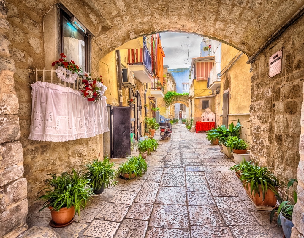 Bari: passeggia tra i vicoli bianchi di Bari Vecchia, assaggia le orecchiette fatte a mano e respira l’autentica atmosfera pugliese.