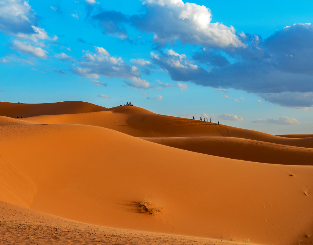 Il Marocco è un Paese ricco di contrasti, dove la storia millenaria si intreccia con panorami spettacolari e culture diverse. Questo tour attraversa il cuore del Paese, permettendoti di vivere città vivaci, deserti sconfinati e paesaggi costieri mozzafiato, per un’esperienza di viaggio intensa e completa.